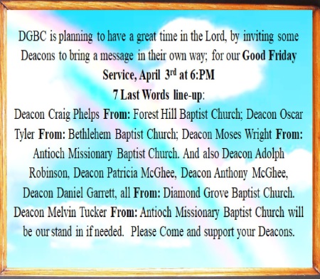 Bible Study: Every WEDNESDAY before 1st and 3rd Sunday at (NEW TIME) 4:00PM